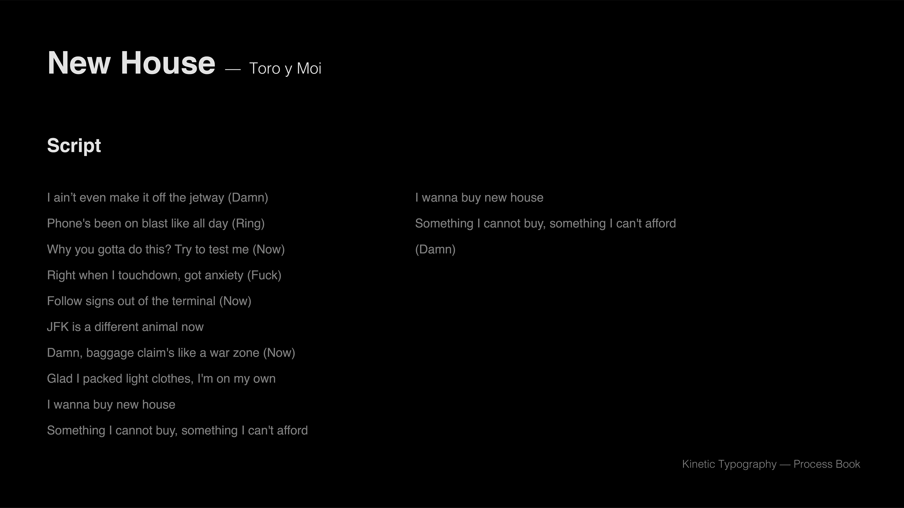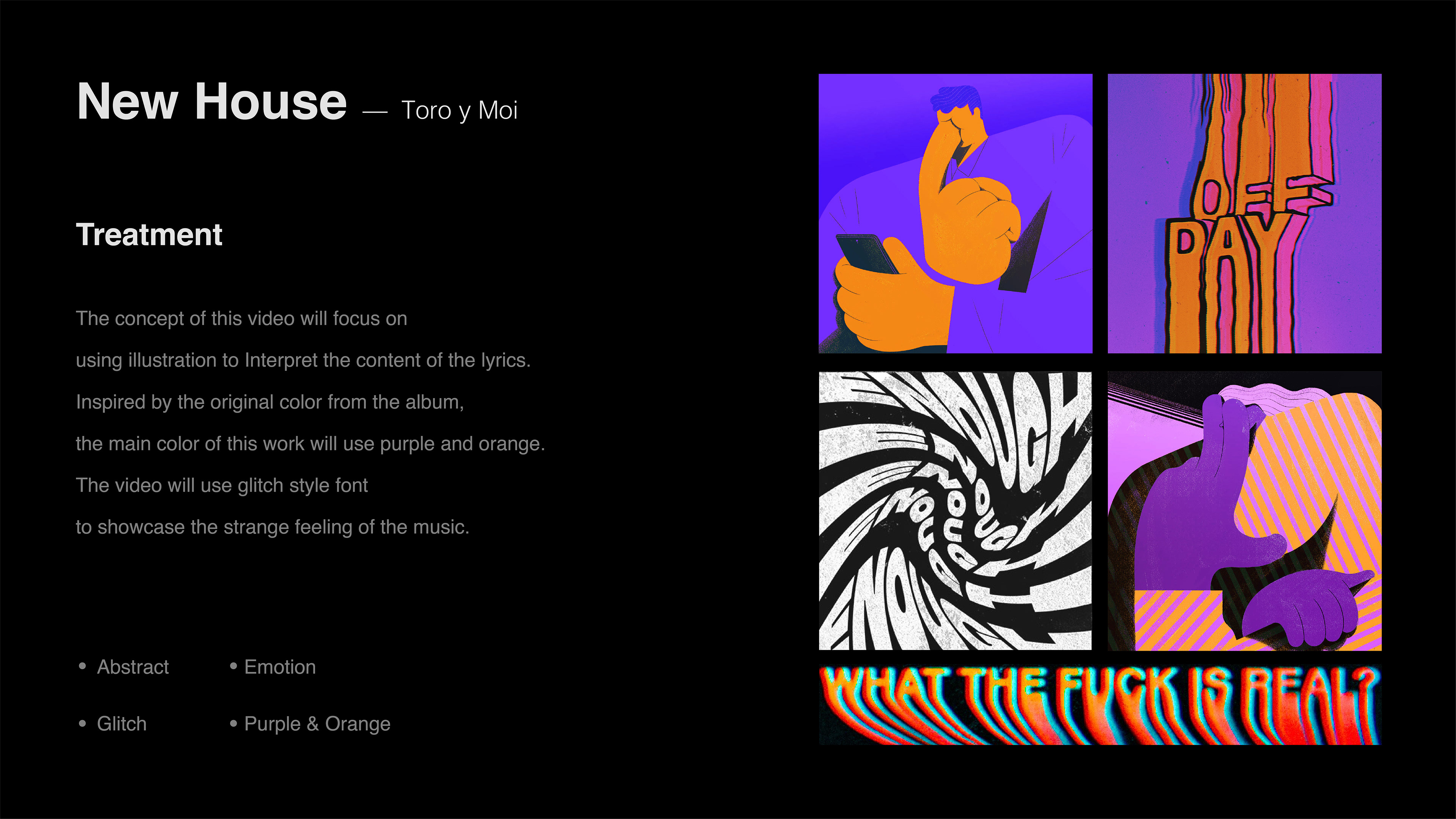 The concept of this video uses motion to Interpret the content of the lyrics. Inspired by the original song — New House, the overall style creates an emotional, bizarre atmosphere.